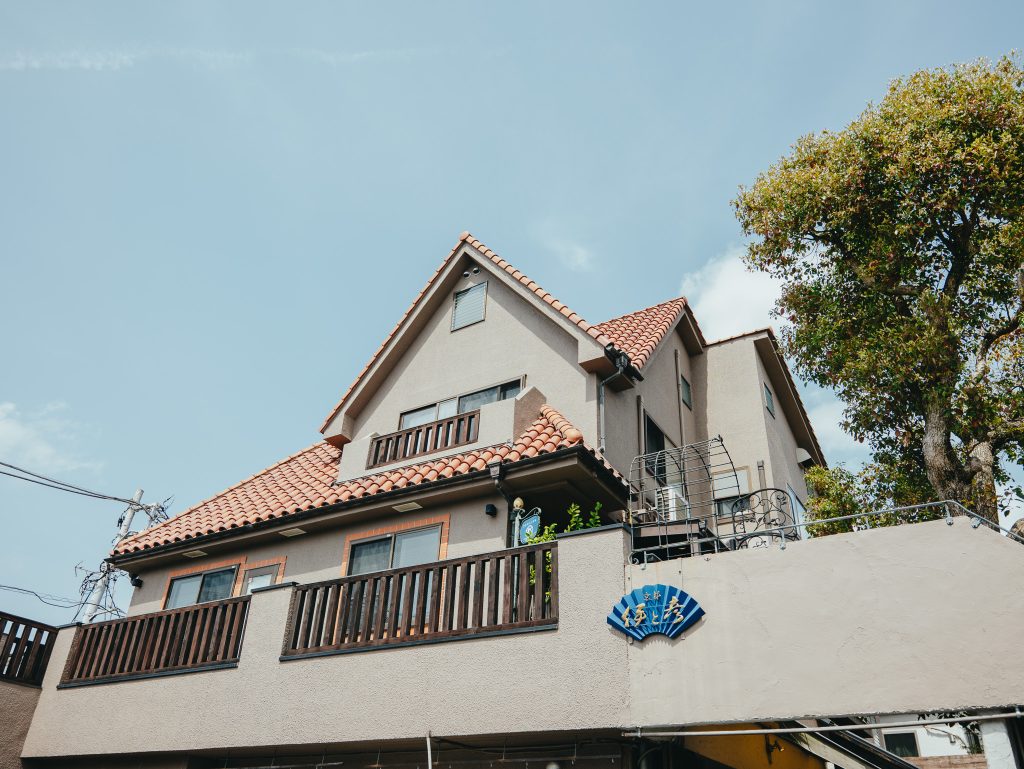 すぐ左手にあるレストランコマチーナさんのテラス奥2階になります。