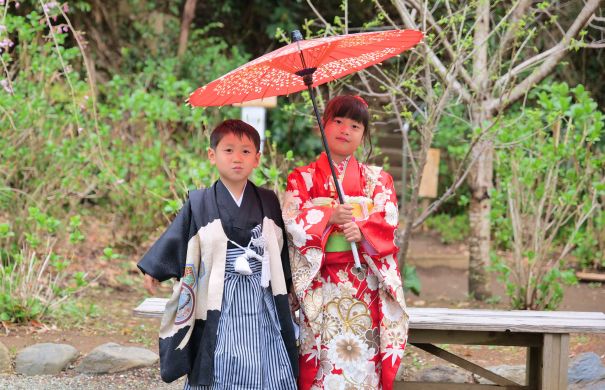 お子様の成長を祝う大切な七五三。華やかな子ども着物に、親御様のフォーマル着物もセットでご用意。安心の着付け付きプラン。