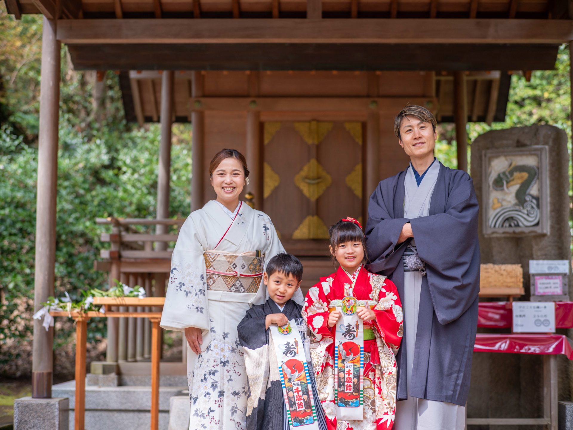 お子様の成長を祝う大切な七五三。華やかな子ども着物に、親御様のフォーマル着物もセットでご用意。安心の着付け付きプラン。